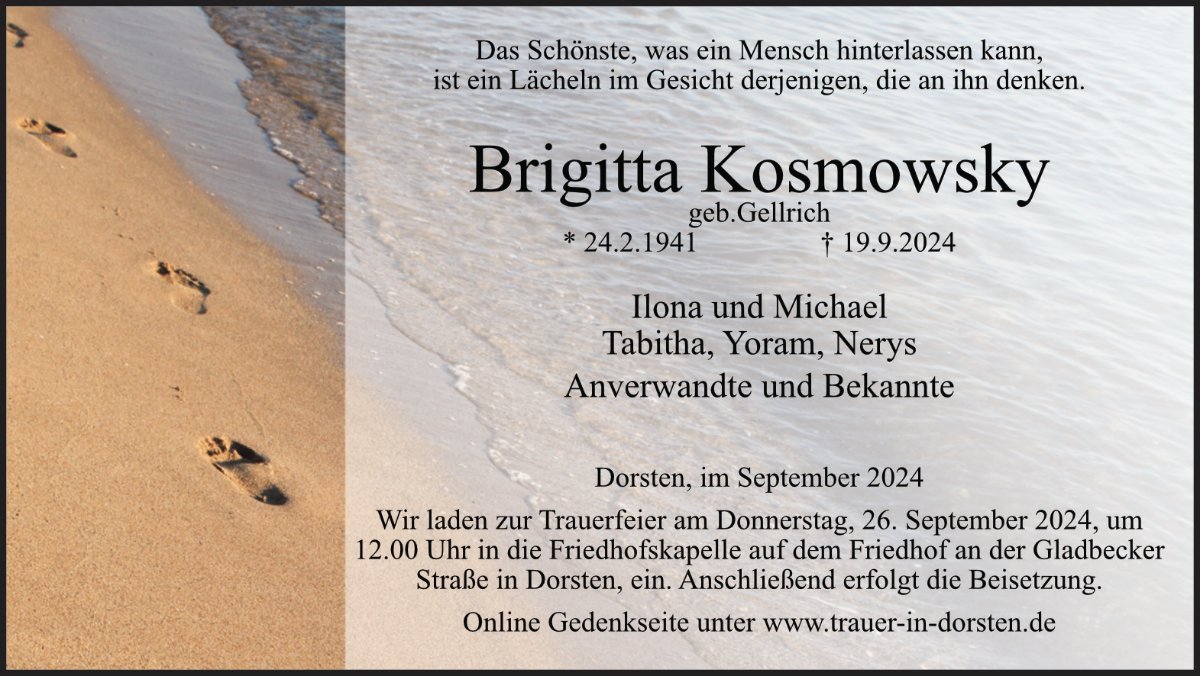 Brigitta Kosmowskygestorben am 19. September 2024